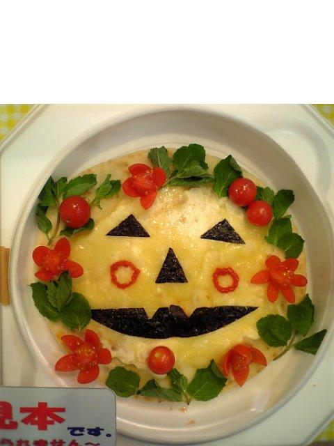 販売時に作って飾った、おめかしカボちゃんピザ。