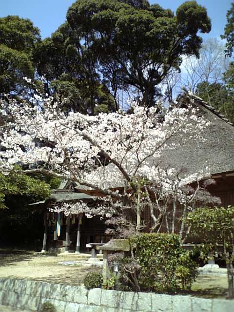 上は藁葺き屋根のお堂と桜の木ですね。